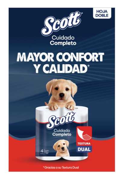 Papel higiénico Scott Cuidado Completo 40 rollos de 30 mts cada uno, doble hoja, ideal para el cuidado diario de toda la familia. Su textura dual brinda mayor suavidad y resistencia, asegurando una experiencia confortable en cada uso. – Doble hoja – Textura dual para mayor suavidad – Presentación compacta y práctica RECOMENDACIONES Recomendado para uso familiar y personal. Mantener en un lugar seco para conservar la calidad del papel.