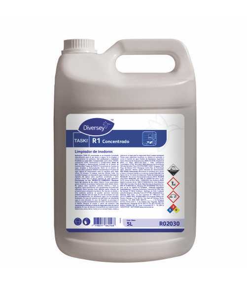 R1 Concentrado es un limpiador de sanitarios formulado para diluir con la unidad Refill Station de Diversey. Basado en ácido cítrico, R1 remueve efectivamente manchas y depósitos en inodoros y orinales. R1 tiene la viscosidad apropiada para una excelente adhesión en superficies verticales e inclinadas.